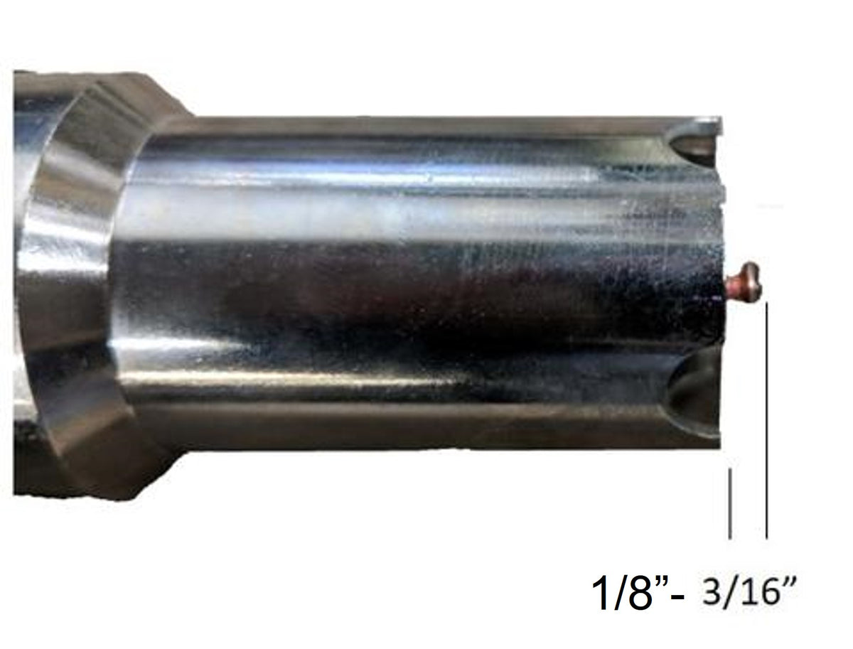 This set up is helpful for when you need a precise location for a weld.  The Template Tube Adaptor comes in 1" and 1-1/4" O.D.  Hanlon Stud Welding recommends the 1-1/4" O.D. as it will allow you to change collets without taking the template tube adaptor off the gun.  This method works with CD studs 1" and shorter.